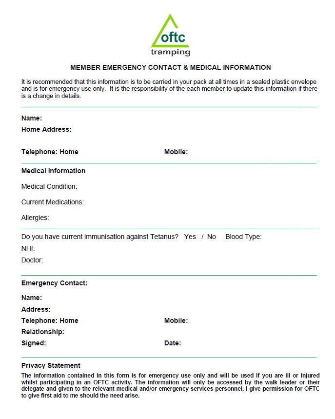 If you have a medical condition and/or take any medication that could influence a medical professional’s decisions during an emergency, we suggest you complete the Emergency Contact and Medical form below.